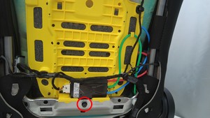 - 将加热器线束从第一排右侧座椅靠背外罩上拆下。