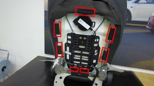 - 将座椅靠背外罩固定件(7 个)安装到第一排右侧座椅靠背框架上。