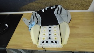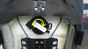 - 逆时针旋转第一排右侧座椅靠背通风扇,将其安装到泡沫垫上。