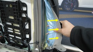 拆下盖住第一排右侧座椅靠背框架内角的下部板。