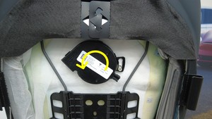 - 顺时针旋转第一排右侧座椅靠背通风扇,将其从泡沫上取下。