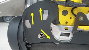 拆下盖住第一排右侧座椅靠背框架内角的上部板。