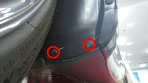 - 将左侧挡泥板放置到轮毂内衬和门槛板罩上,然后紧固卡子(2 个)。