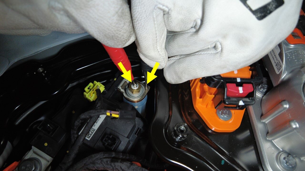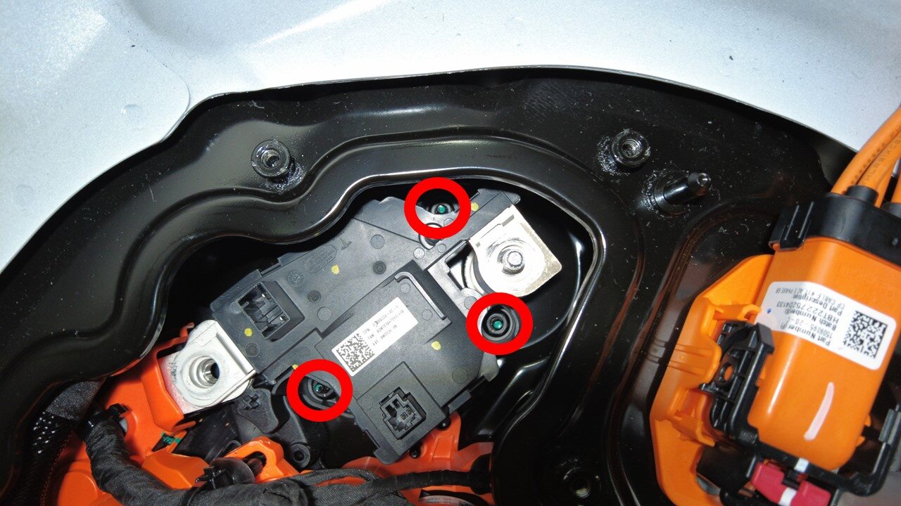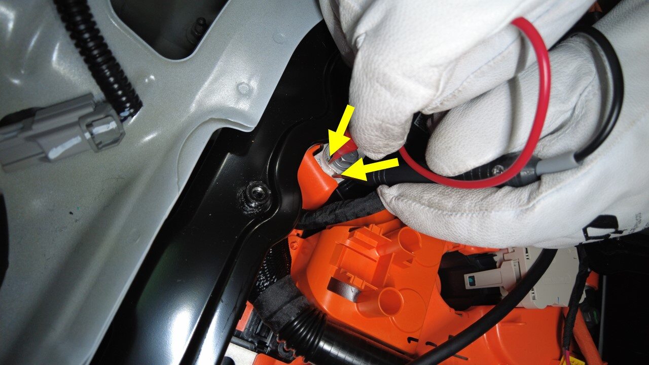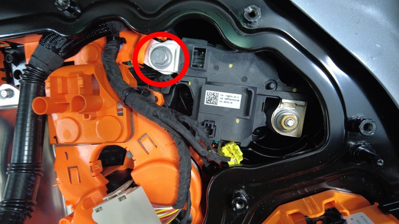 | 将负极电池组触点开关固定到高压电池仓的螺母 |