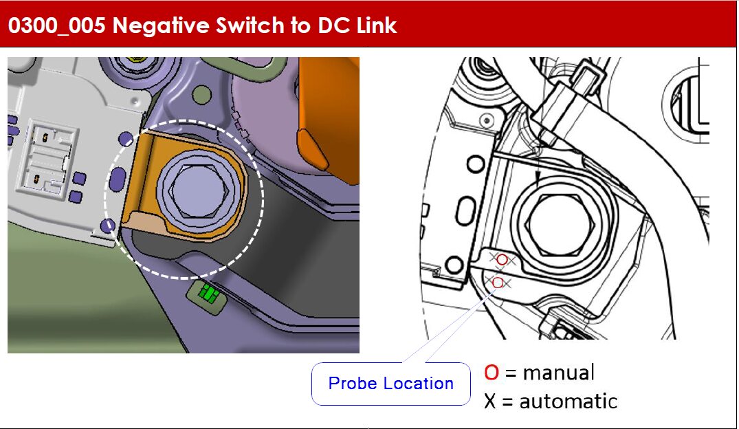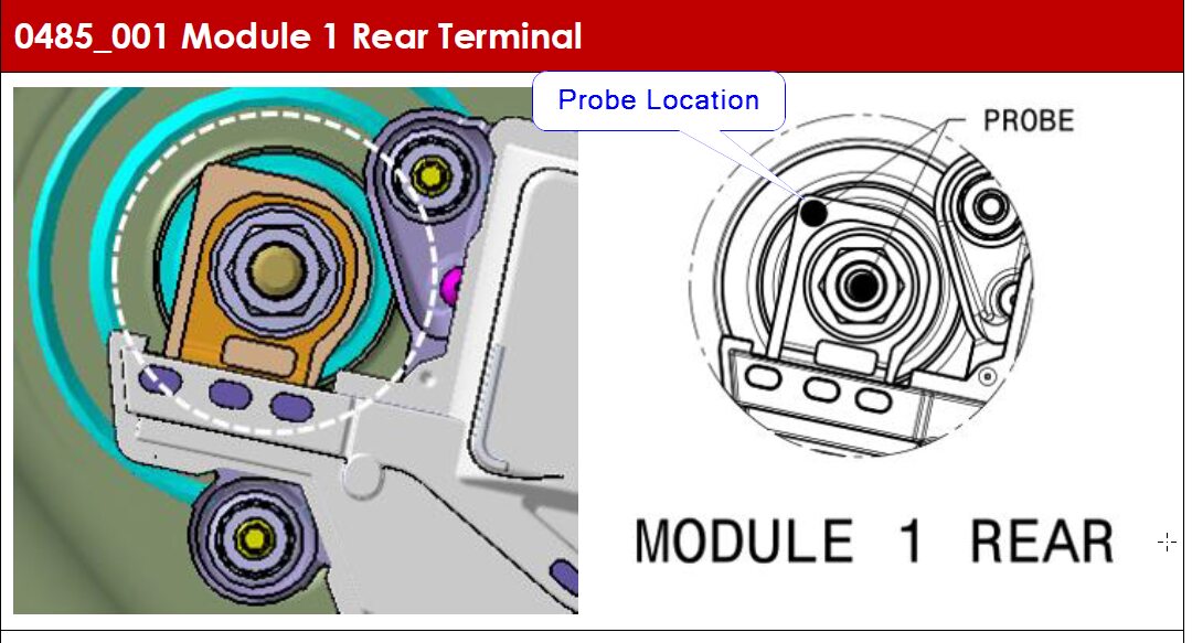 在负极电池组触点开关至模块 1 后部端子处执行 Hioki 阻抗测试