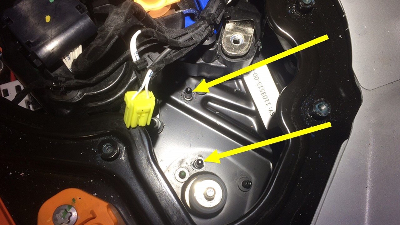- 拆下导销(2 个),以将负极电池组触点开关从高压电池仓上取下。