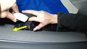 - 使用塑料饰板工具将左前车门内把手前部与内部释放开关分离。