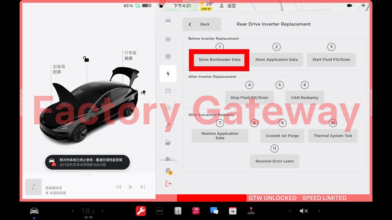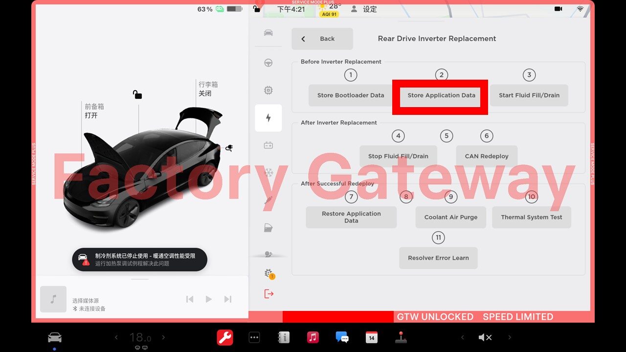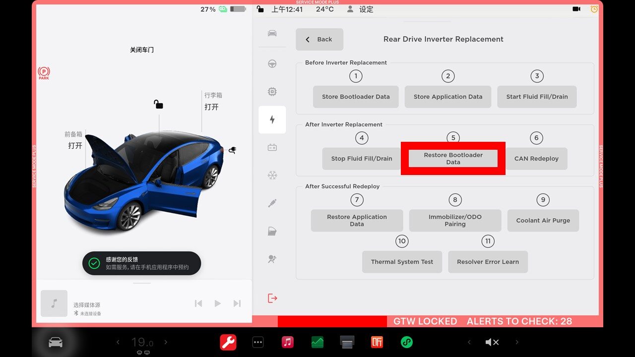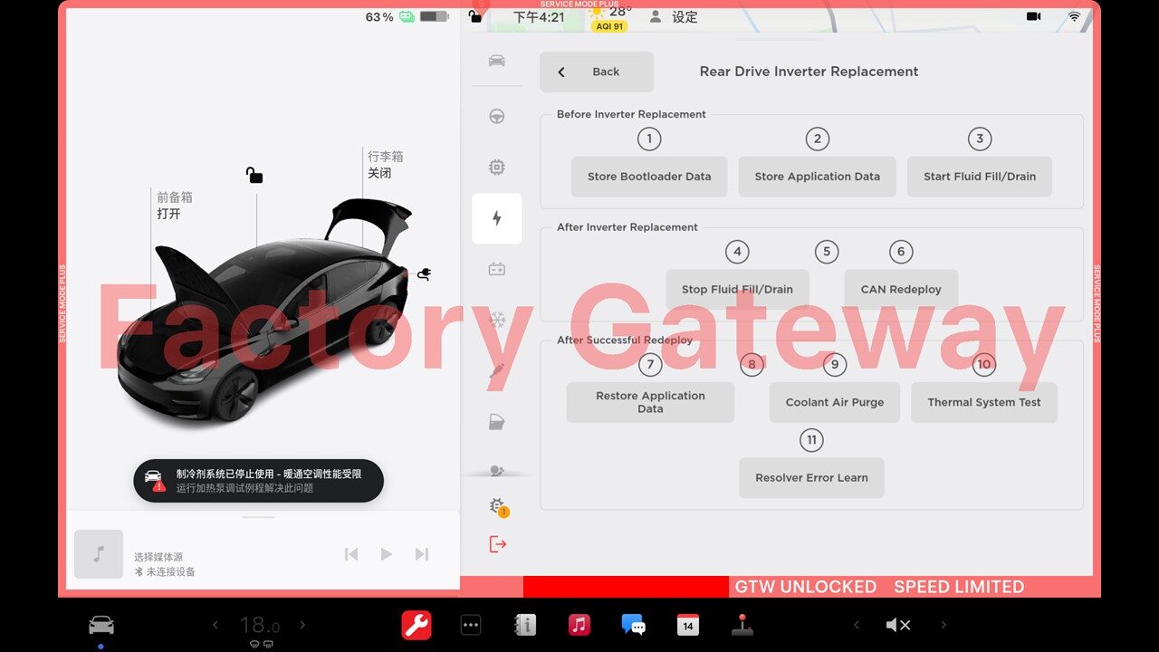 尽管此程序已经过验证,但仍是一个草案。可能没有警告和注意事项。请遵守安全要求,处理或靠近高压系统和部件时,请谨慎操作。请将校正修理内容及反馈发送至ServiceDevelopment@teslamotors.com。