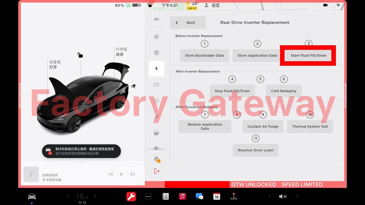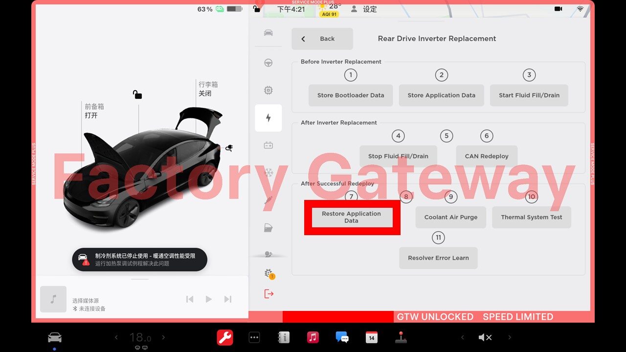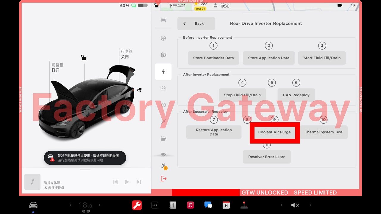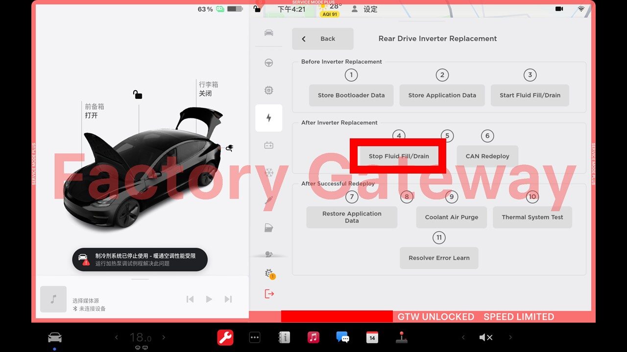 尽管此程序已经过验证,但仍是一个草案。可能没有警告和注意事项。请遵守安全要求,处理或靠近高压系统和部件时,请谨慎操作。请将校正修理内容及反馈发送至ServiceDevelopment@teslamotors.com。