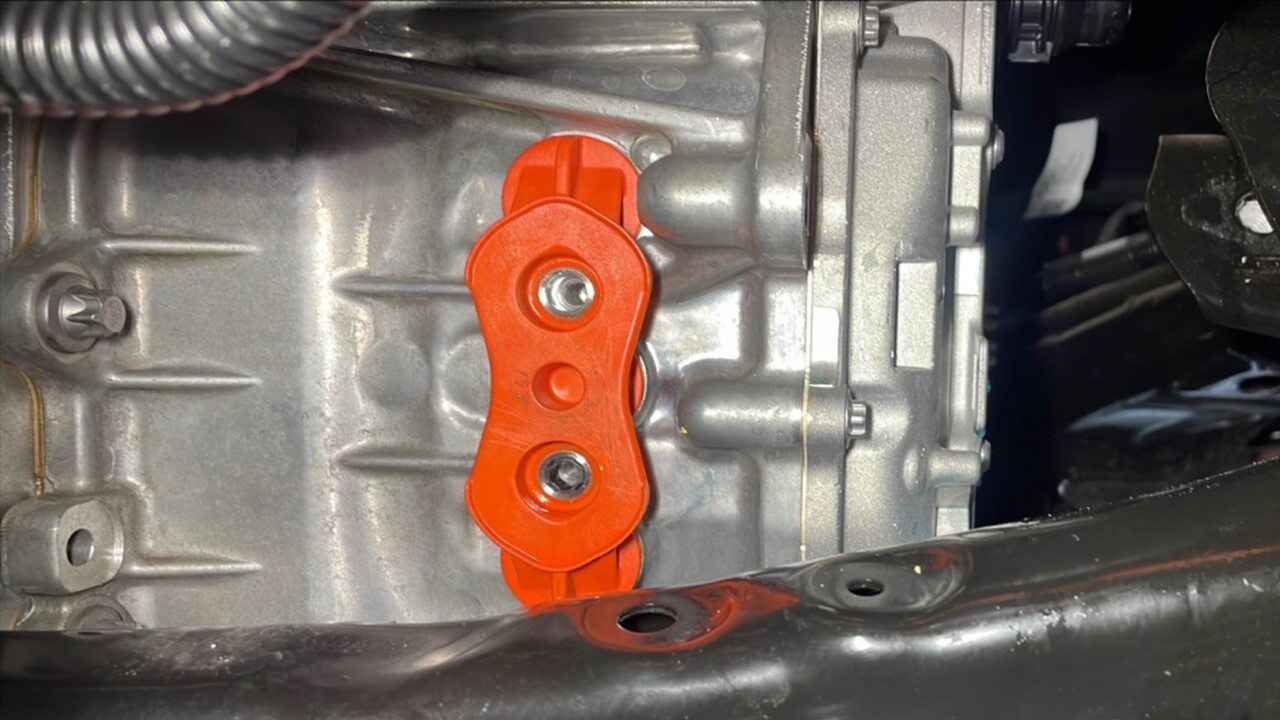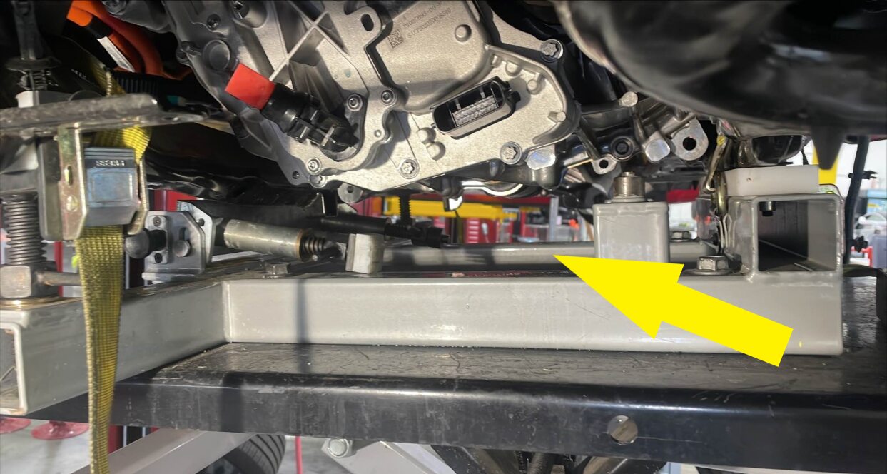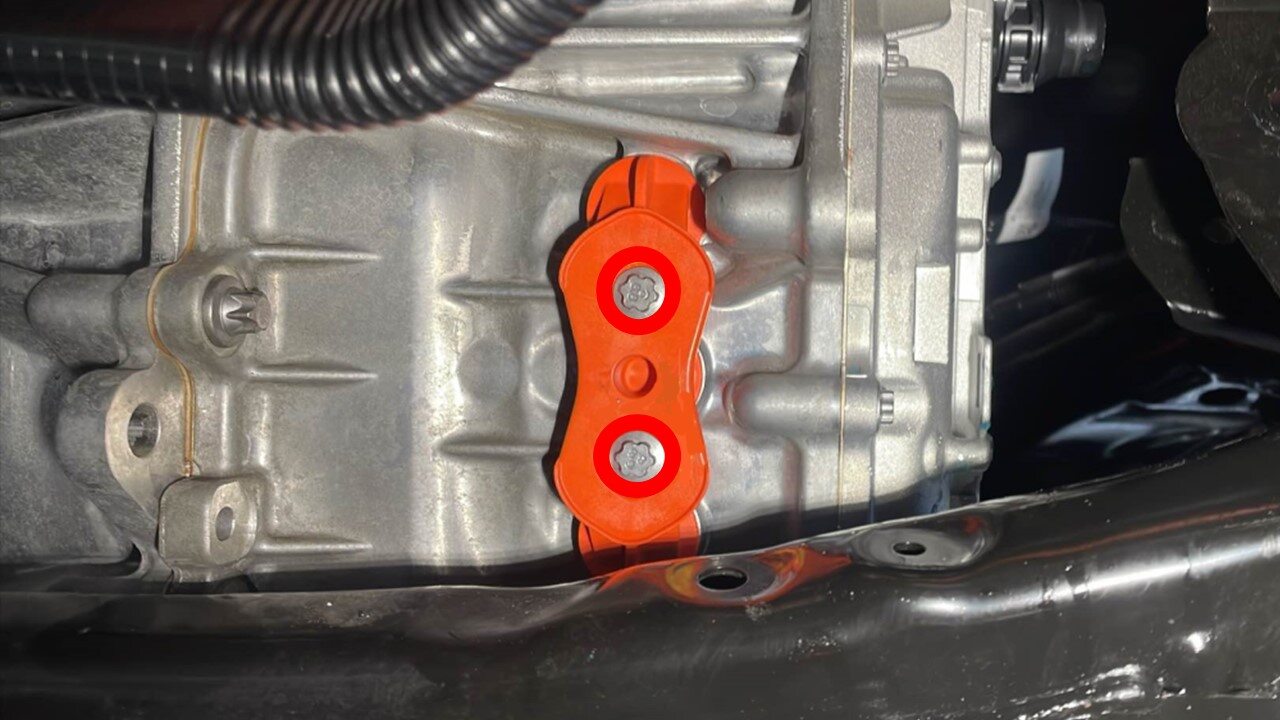 拆卸用于固定高压电池外壳后部滑板的下部螺栓。
