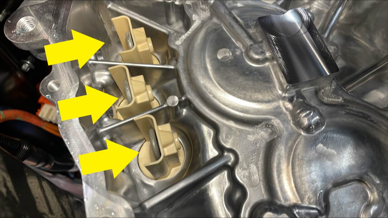 将左侧软管夹安装到高压电池外壳后部滑板上。