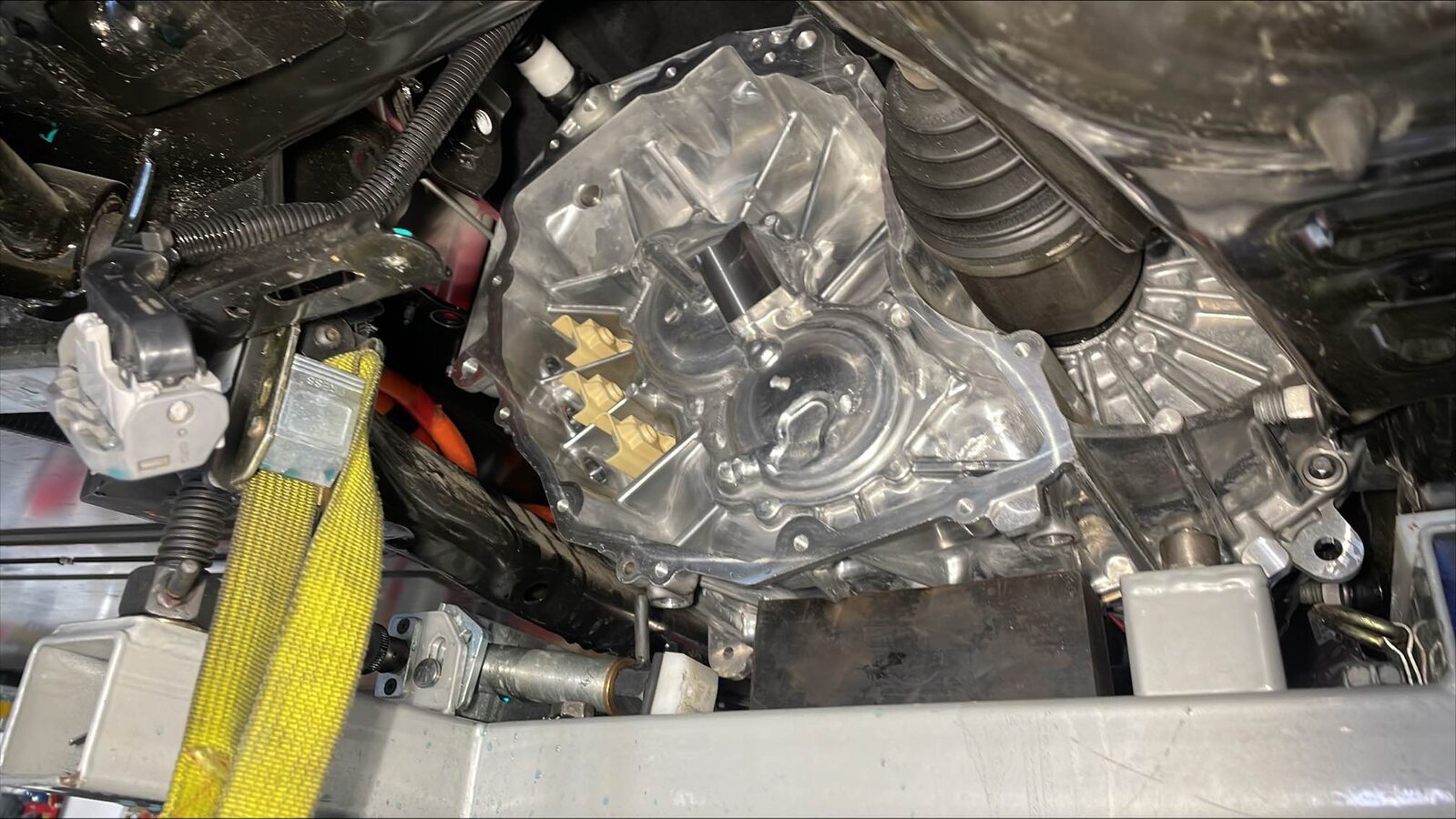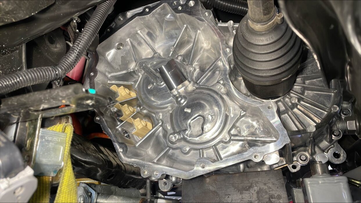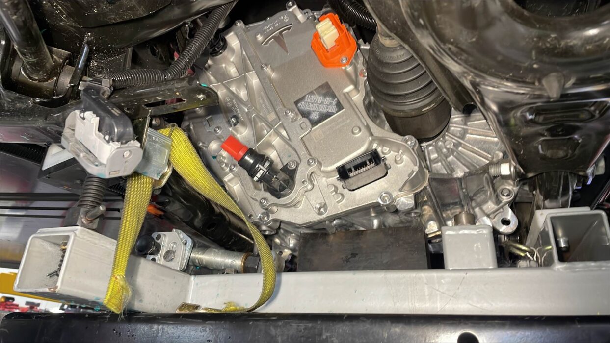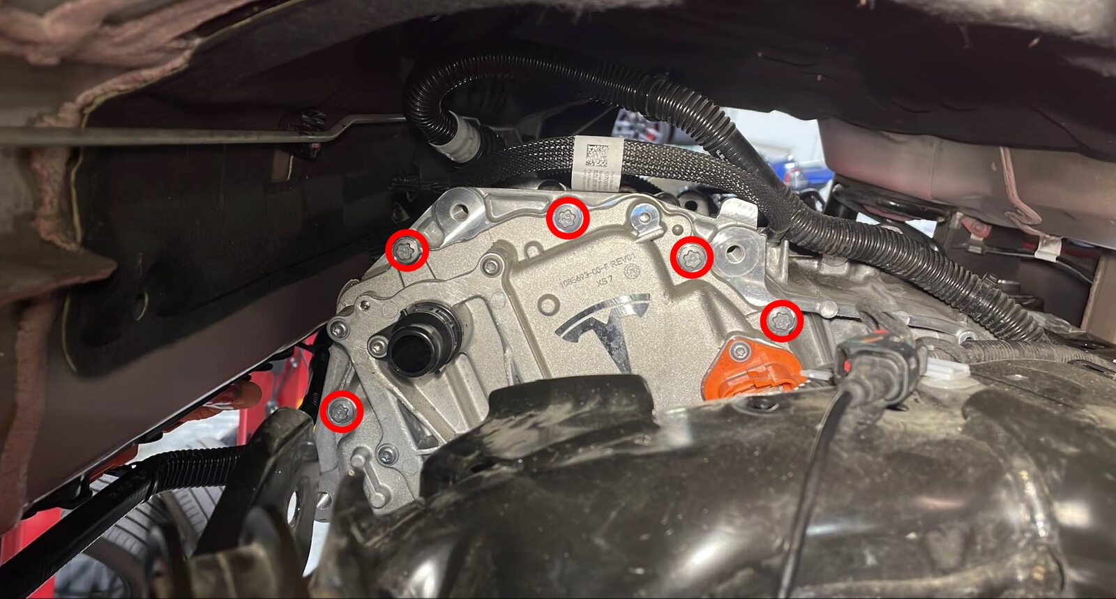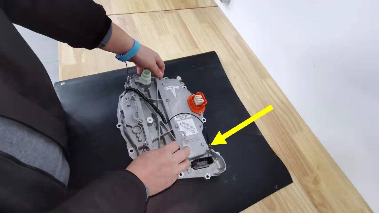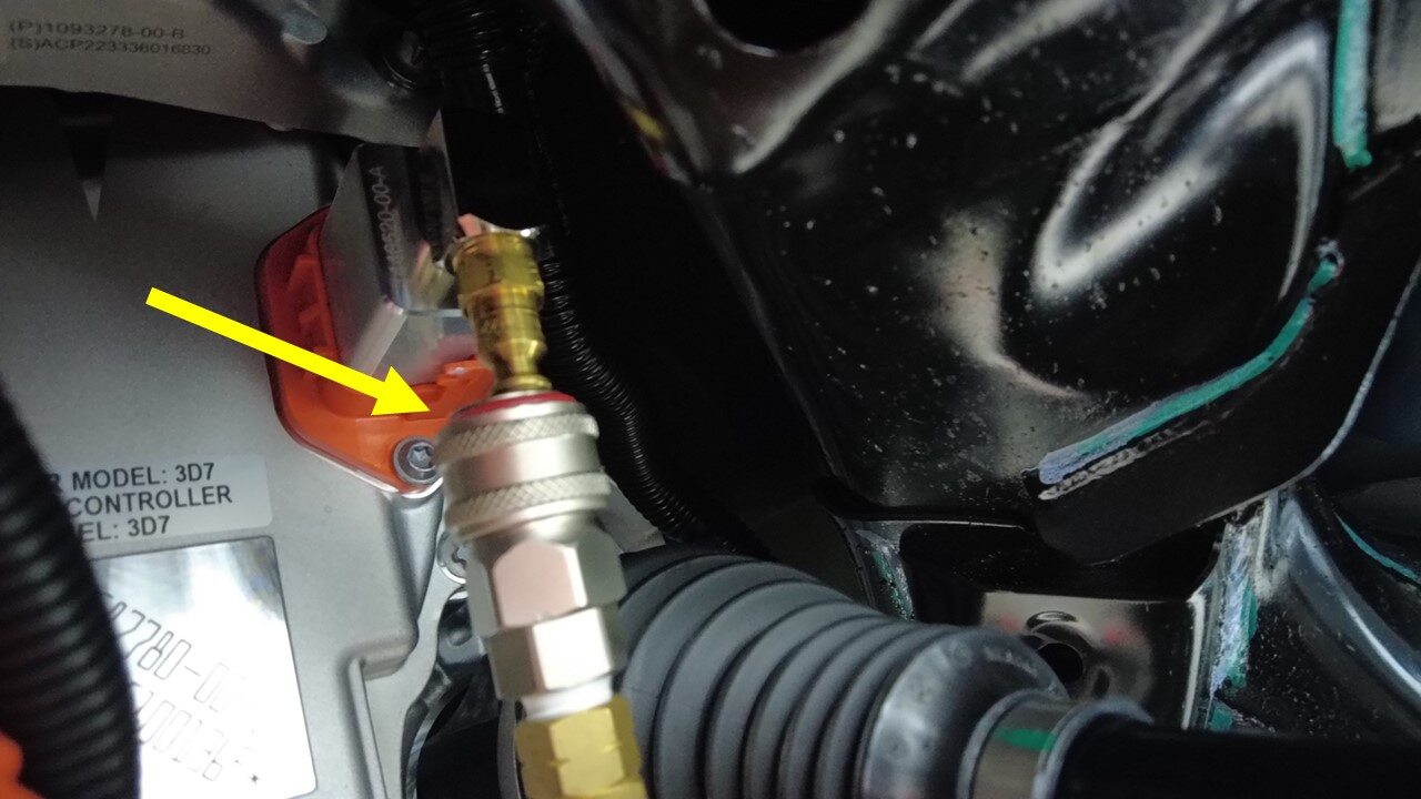 从高压电池左后侧断开后驱动单元变流器入口管。