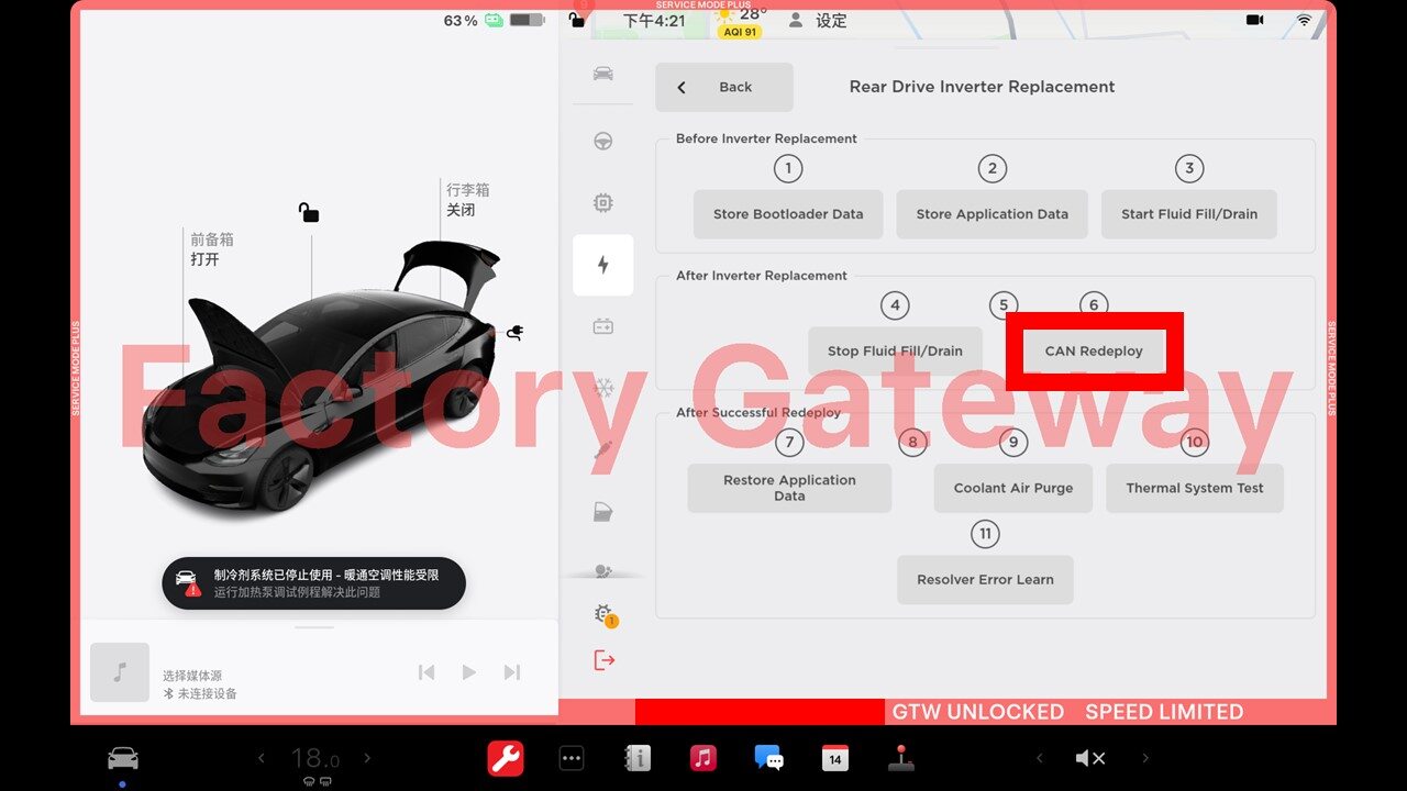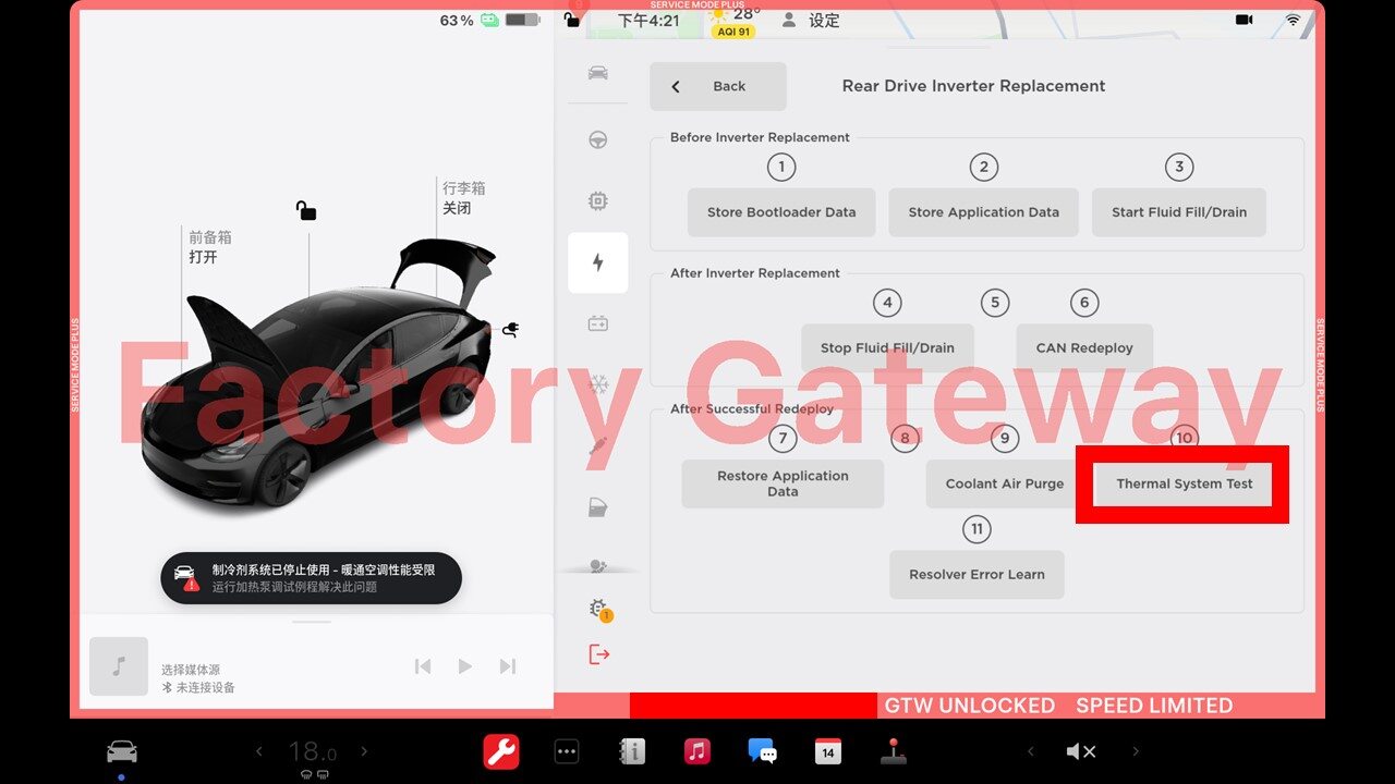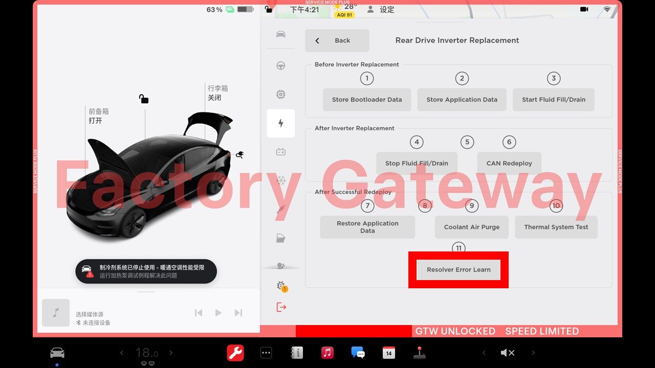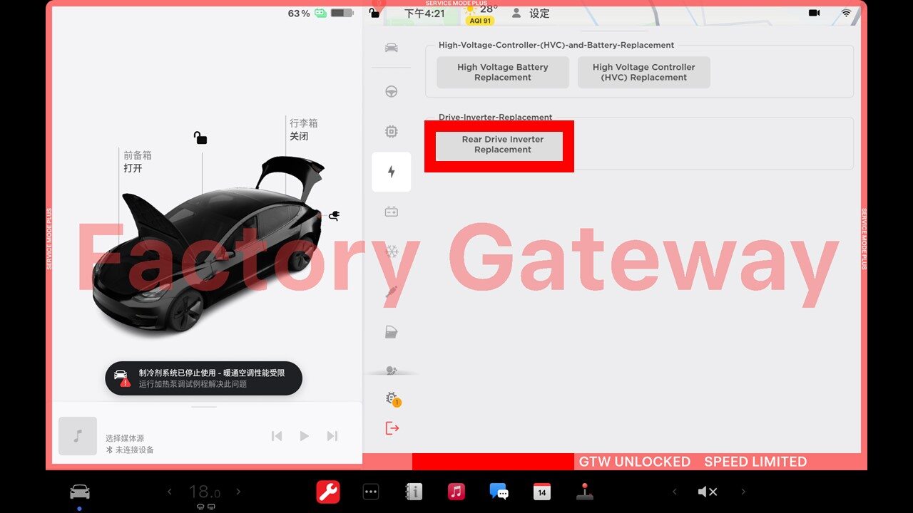 - 在 UI 界面上选择 "REAR Drive INVERTER Replacement"。