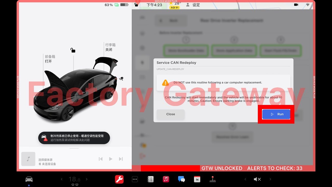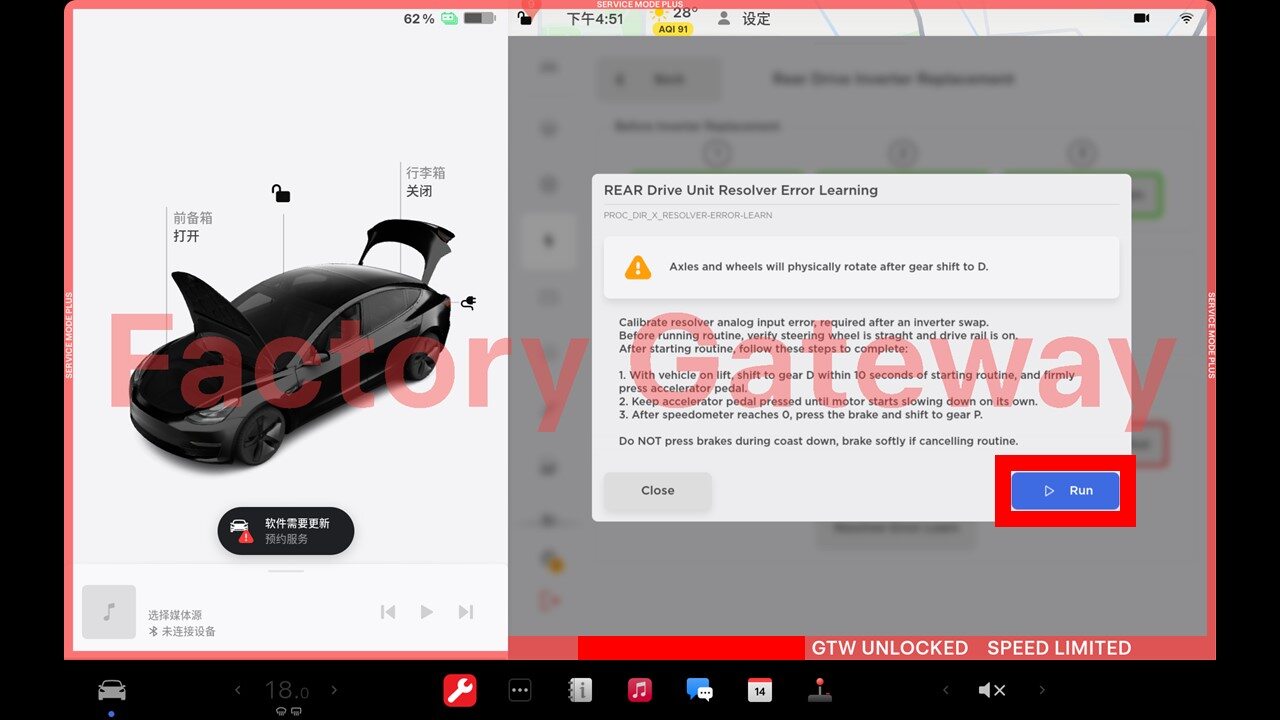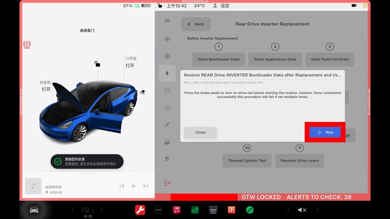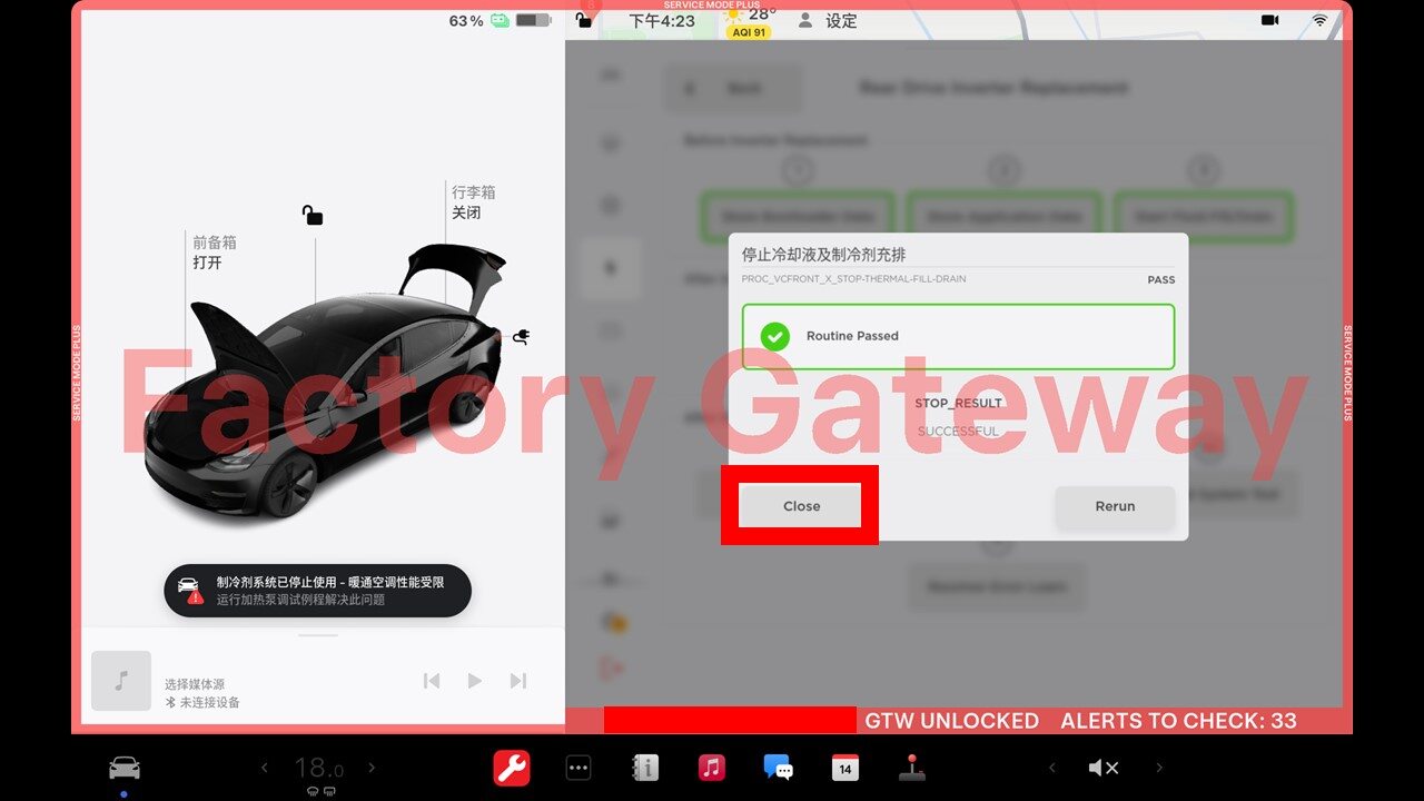 - 在 UI 界面上选择 "REAR Drive INVERTER Replacement"。