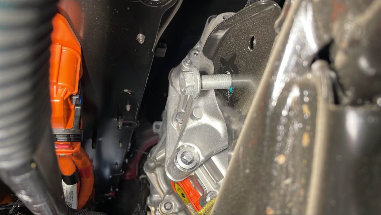 拆卸用于固定高压电池外壳后部滑板的上部螺栓。