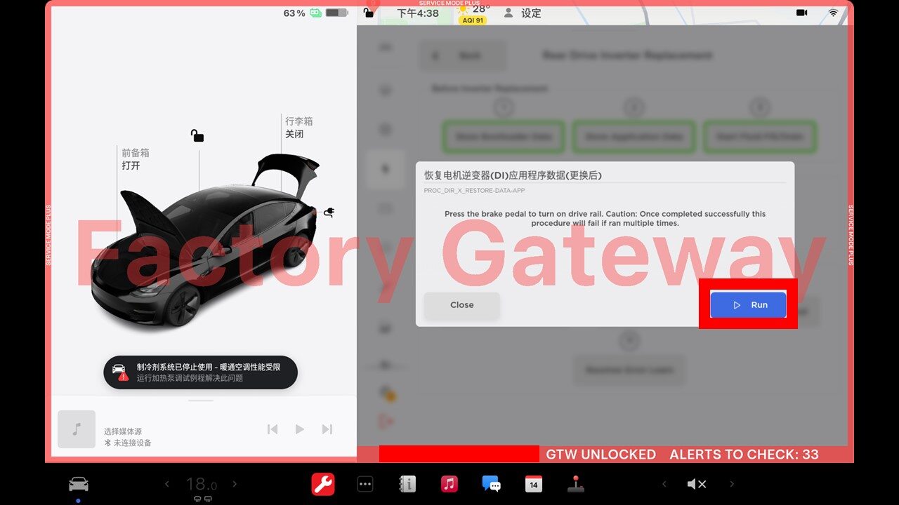在 UI 界面上选择 "Run" 以“恢复刷写数据”。
