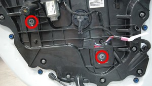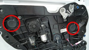 - 拆卸覆盖车门开口的螺塞(2 个),以便接触用于固定车窗玻璃的螺栓。