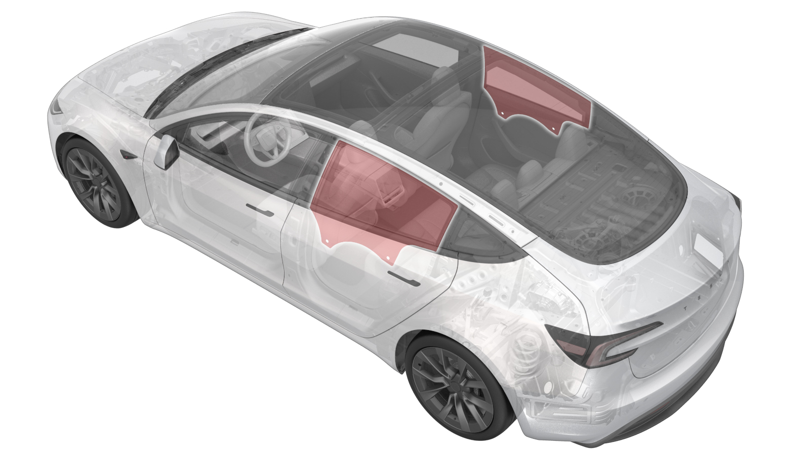 - 使用间隙和齐平度工具检查左后车窗玻璃的装配情况。