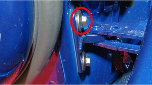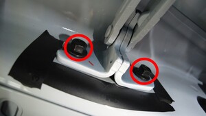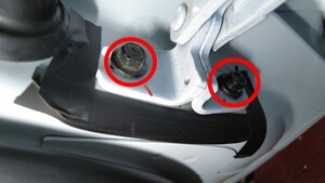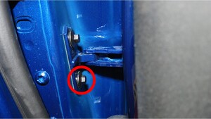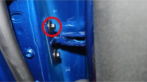 拆卸将铰链固定到左前车门的下部螺栓(2 个),然后松开将铰链固定到车门的上部螺栓(2 个)。