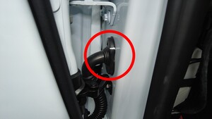 将线束穿过车门总成送入驾驶室,然后将索环安装到车身上。