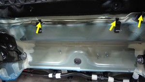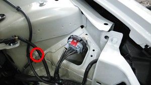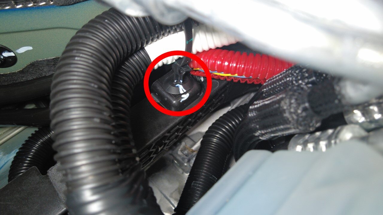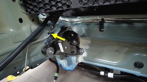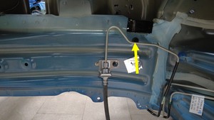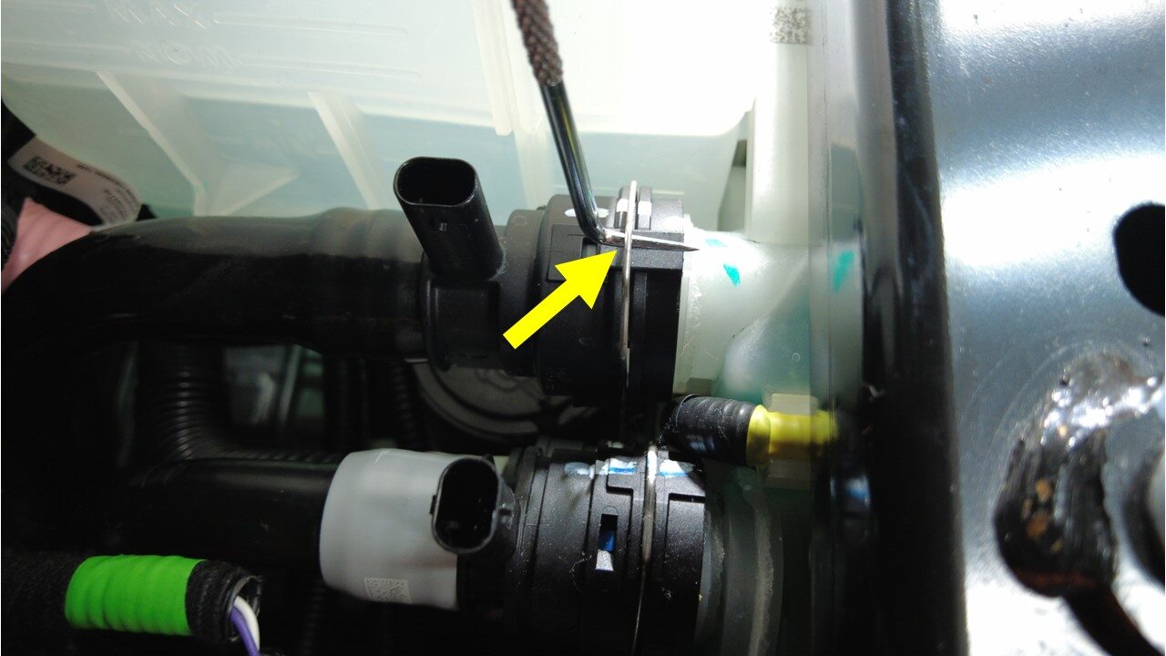 - 紧固将清洗器软管固定到左前车架纵梁区的卡子。