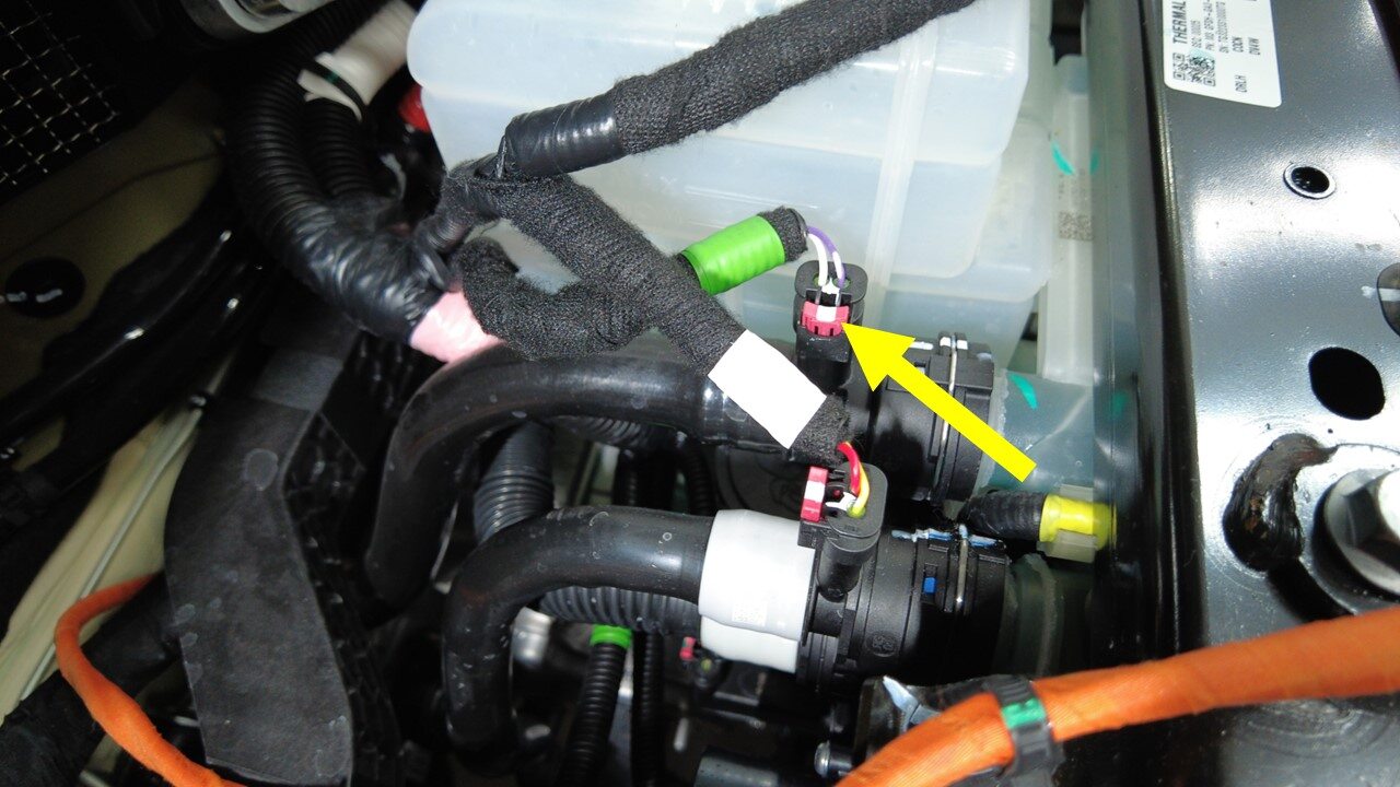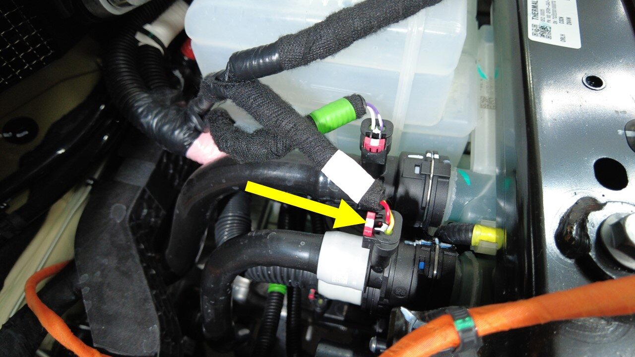 断开冷却器至电池软管以及动力总成供给软管上的传感器连接器(2 个)。