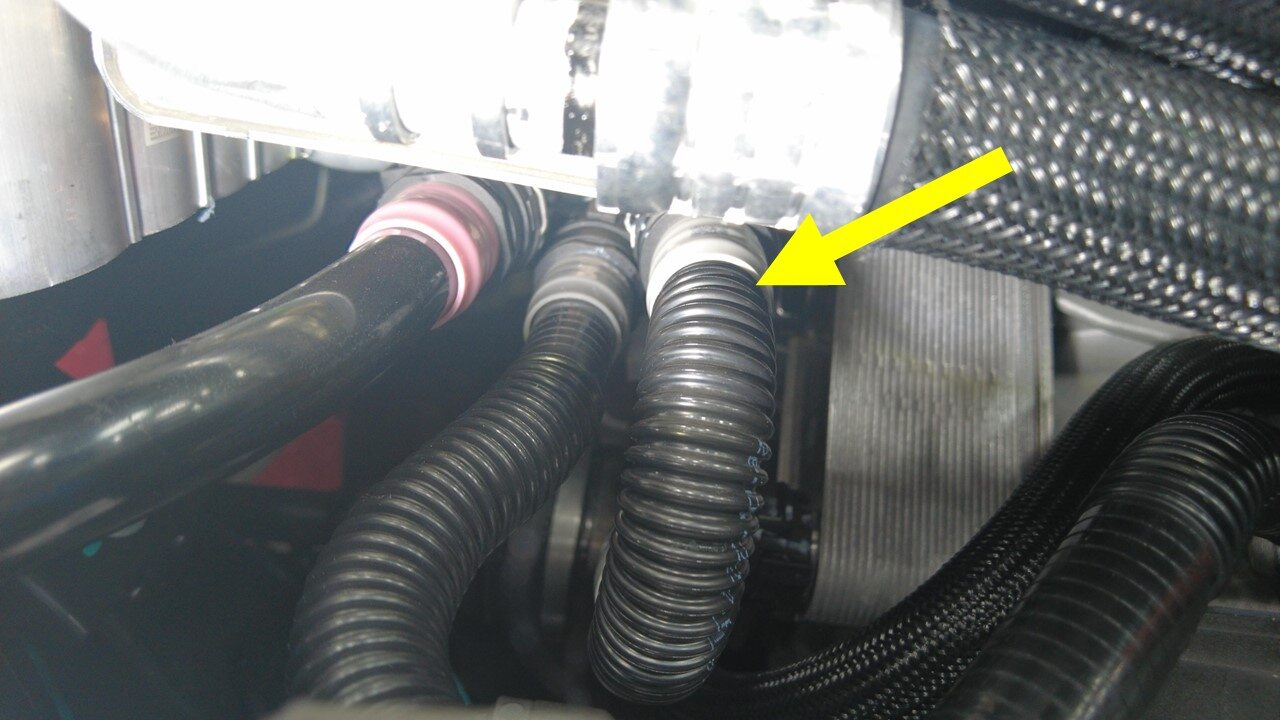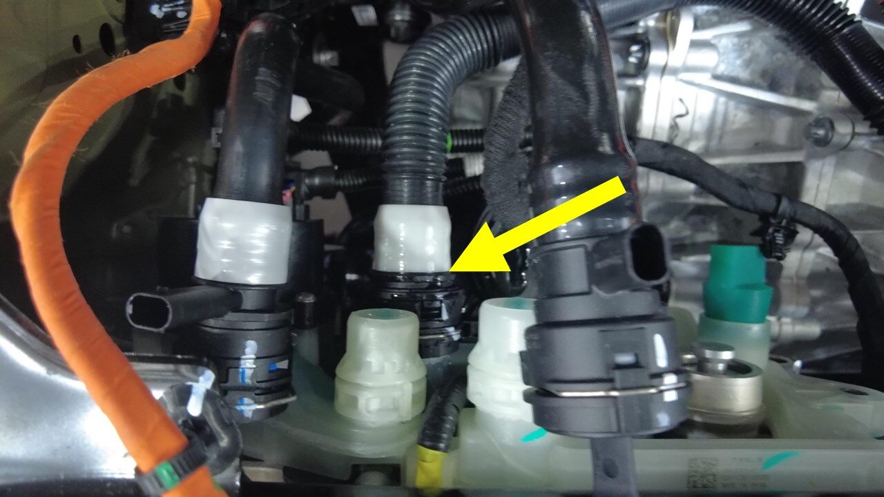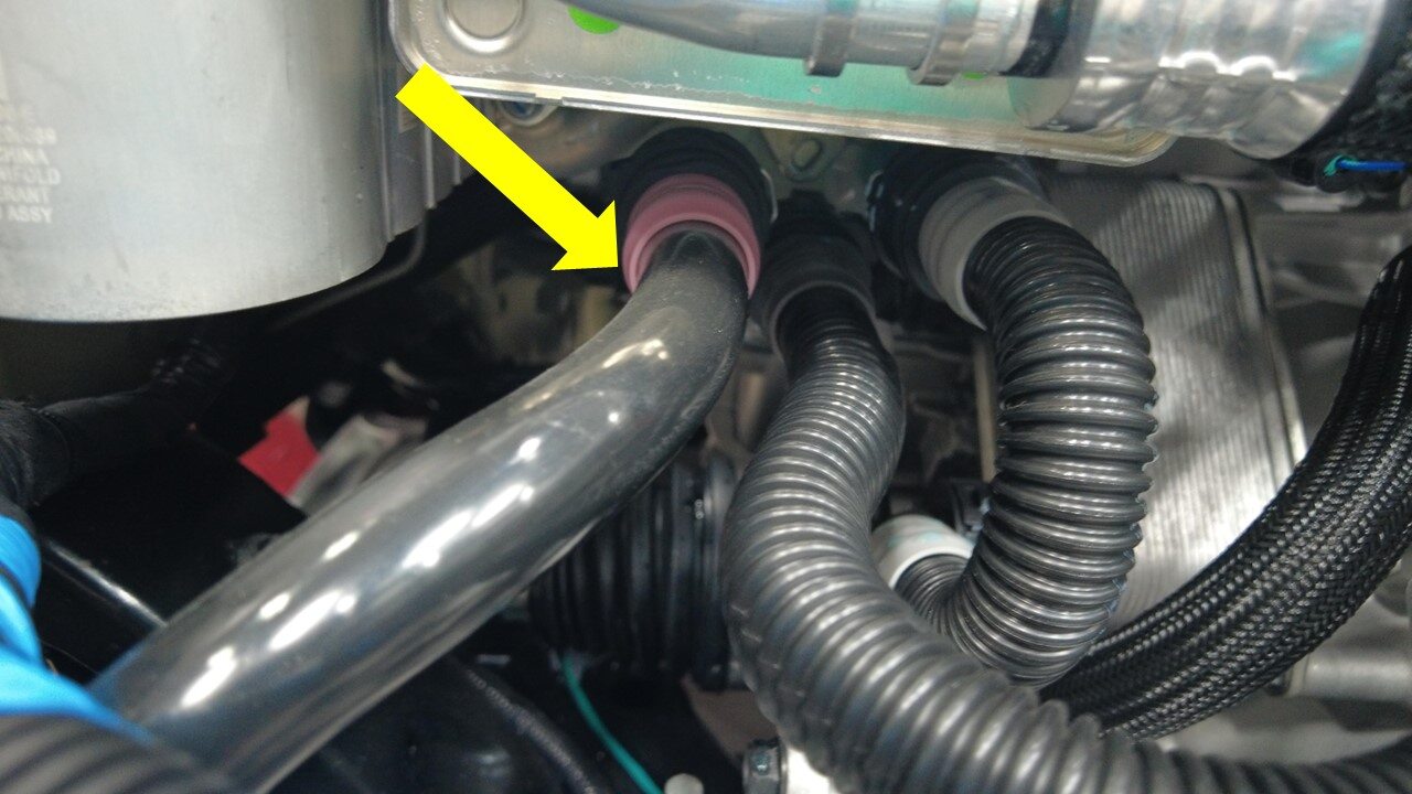 将冷却器至电池软管、动力总成供给软管以及高压电池回路软管从超级歧管上断开,然后堵住所有管件接头,越快越好,以免冷却液流失。