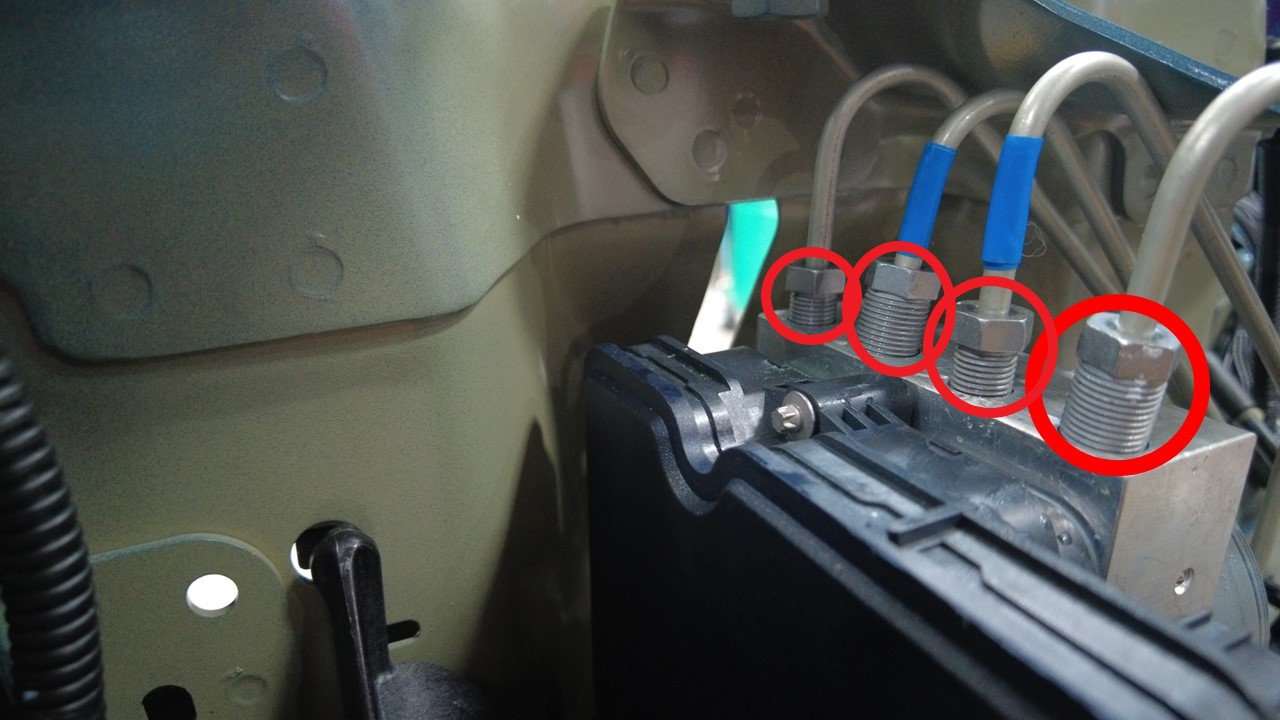 拆卸将制动管路固定到液压控制单元的螺母(4 个)。