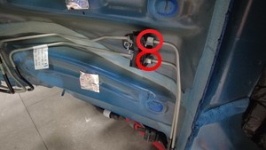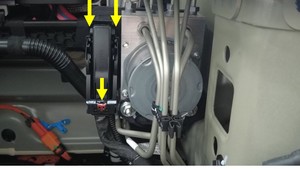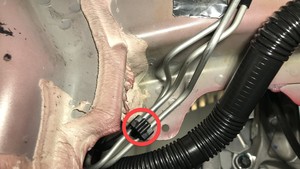 - 松开将前制动管路管束固定到左侧车身纵梁区的卡子。