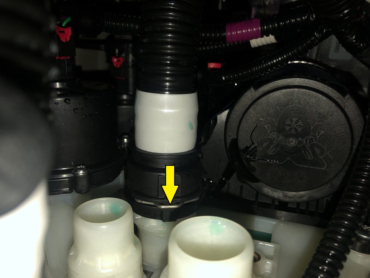 - 在车辆前部下方放置一个液体收集器,然后打开冷却液罐盖。