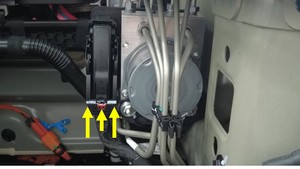 - 松开黑色夹子,然后将制动管路从左前连接件上松开。