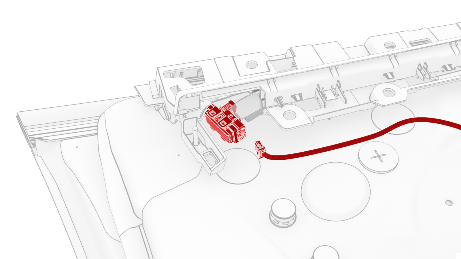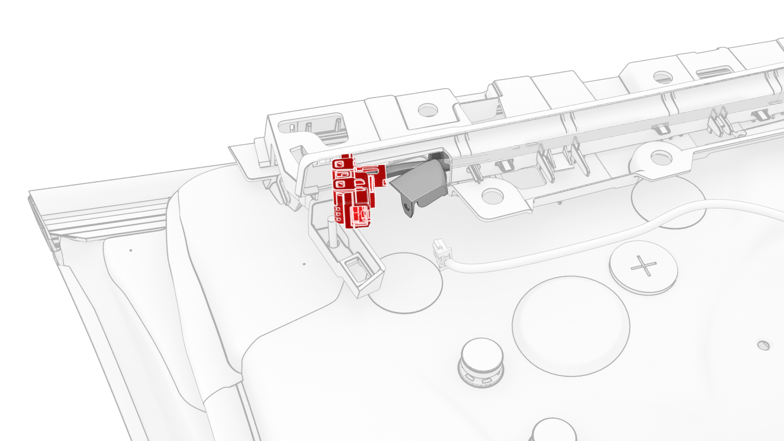 接合将左前车门氛围灯模块固定到 LED 灯带上的锁片(2 个)和定位销。