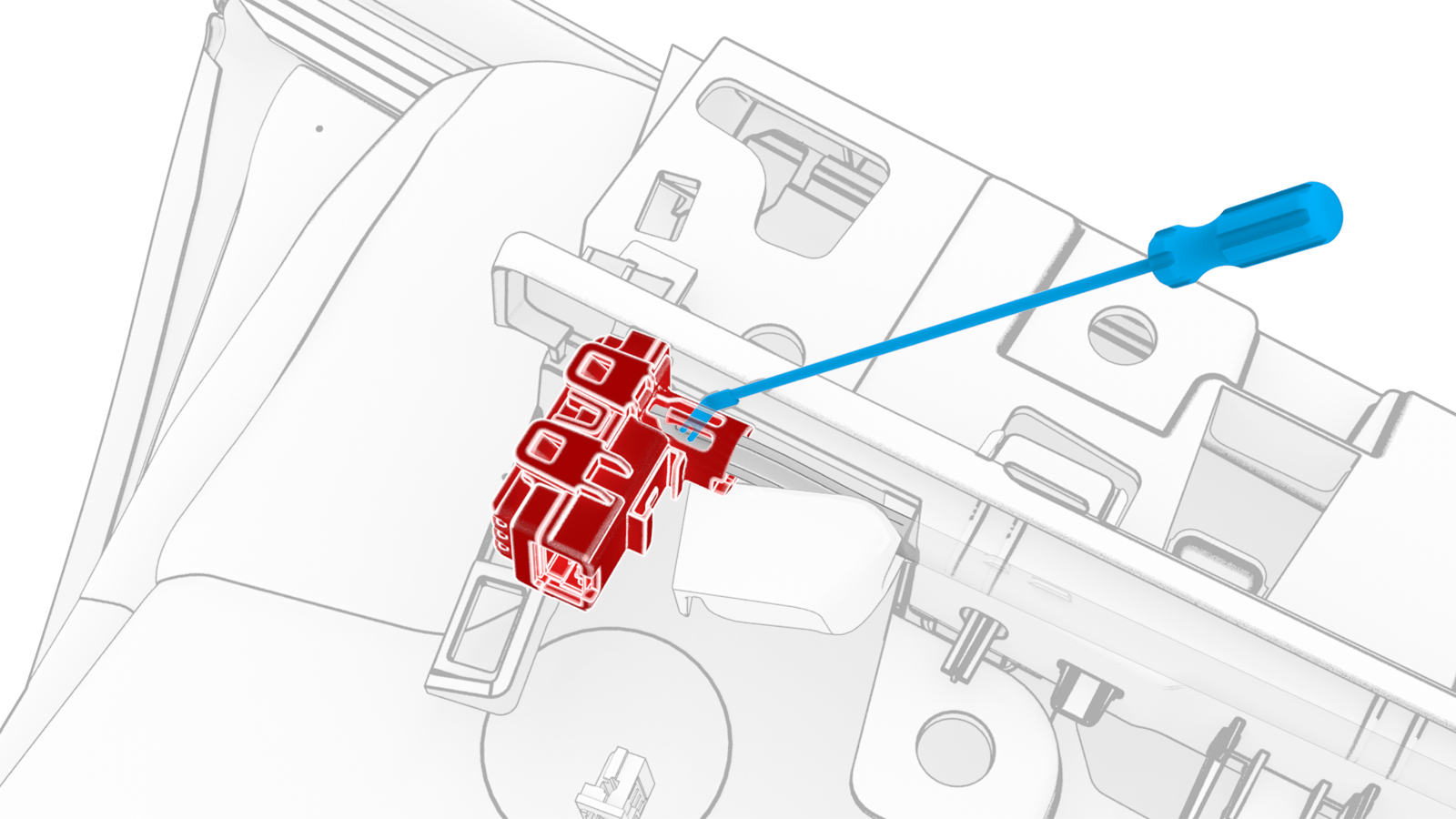 - 松开将左前车门氛围灯模块固定到车门饰板支架的锁片。