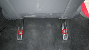 拆卸并弃置将右侧第一排座椅后部固定到车身的螺栓(2 个)。