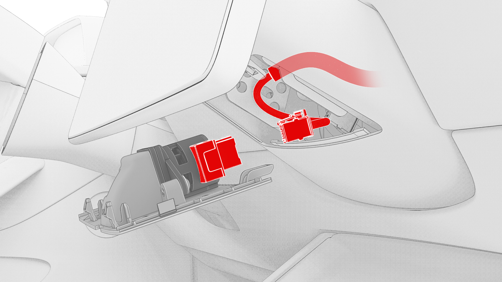 维修面板上仍连有电气线束。请勿将维修面板过远拉离仪表板。