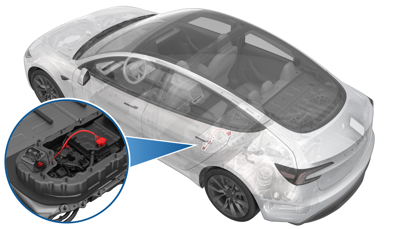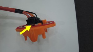 - 将高压电池交流滤波器线束放置在高压电池仓上。