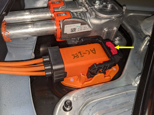 从高压电池仓高压接头上断开交流滤波器输入线束。