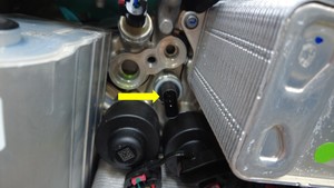 - 如果高压温度传感器的 O 型环被挤压,或者不再向倒角滑动,请停止并反拧传感器,直至 O 型环不再被挤压。