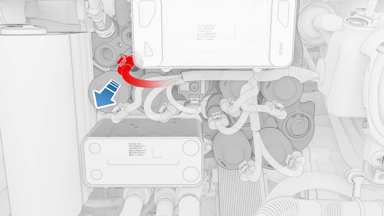 松开锁片,然后断开高压和温度传感器上的电气连接器。