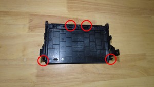 - 使用饰板工具松开将上面板固定到中控台的导片(2 个)和卡子(2 个)。