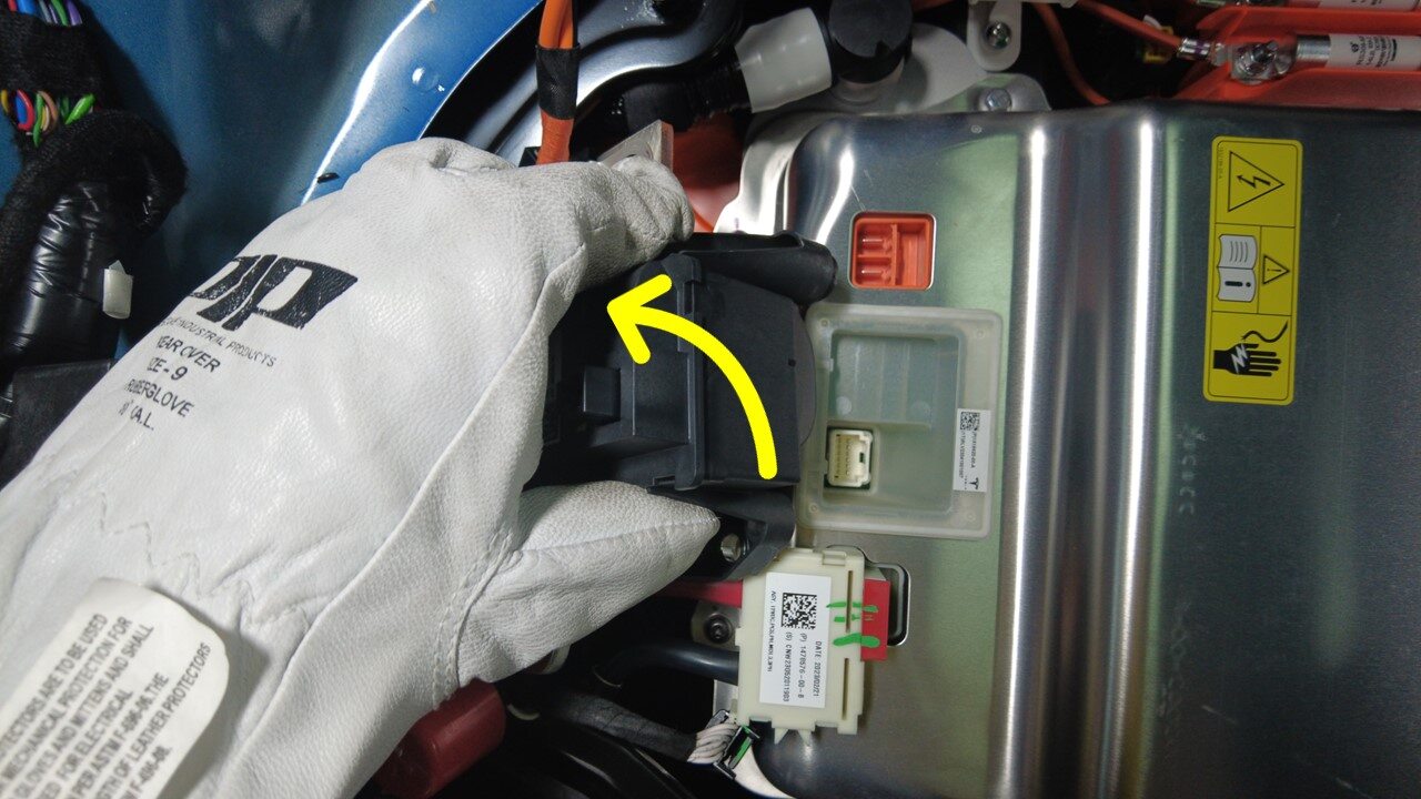 注Check gloves for damage prior to use, Refer to service document TN-15-92-003 R1, for information on inspecting HV gloves. https://service.teslamotors.com/protected-doc/ServiceBulletins/External/TN/TN-15-92-003_High_Voltage_Awareness_Care_Points_R4.pdf