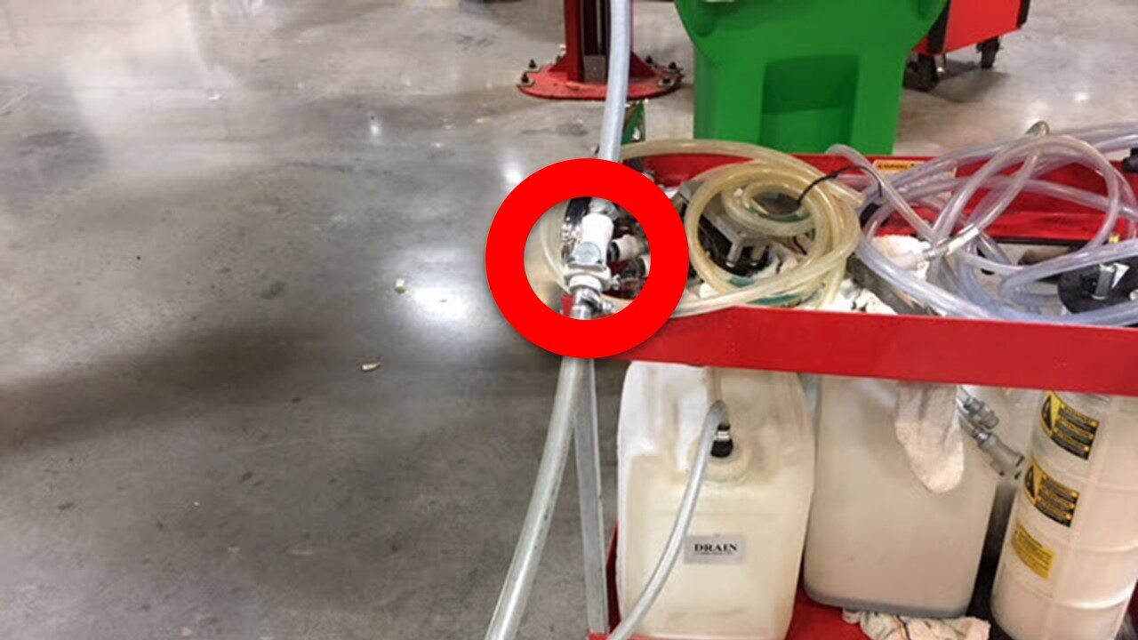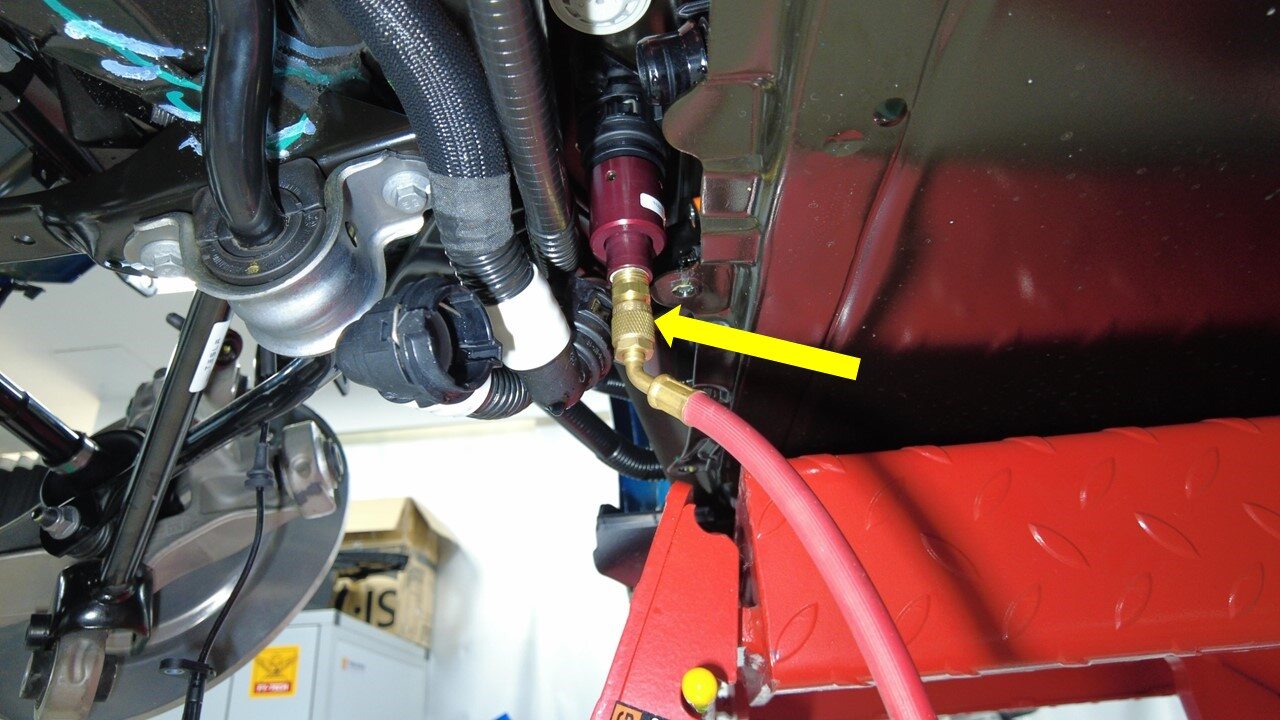 - Disconnect shop air supply from coolant refill tool