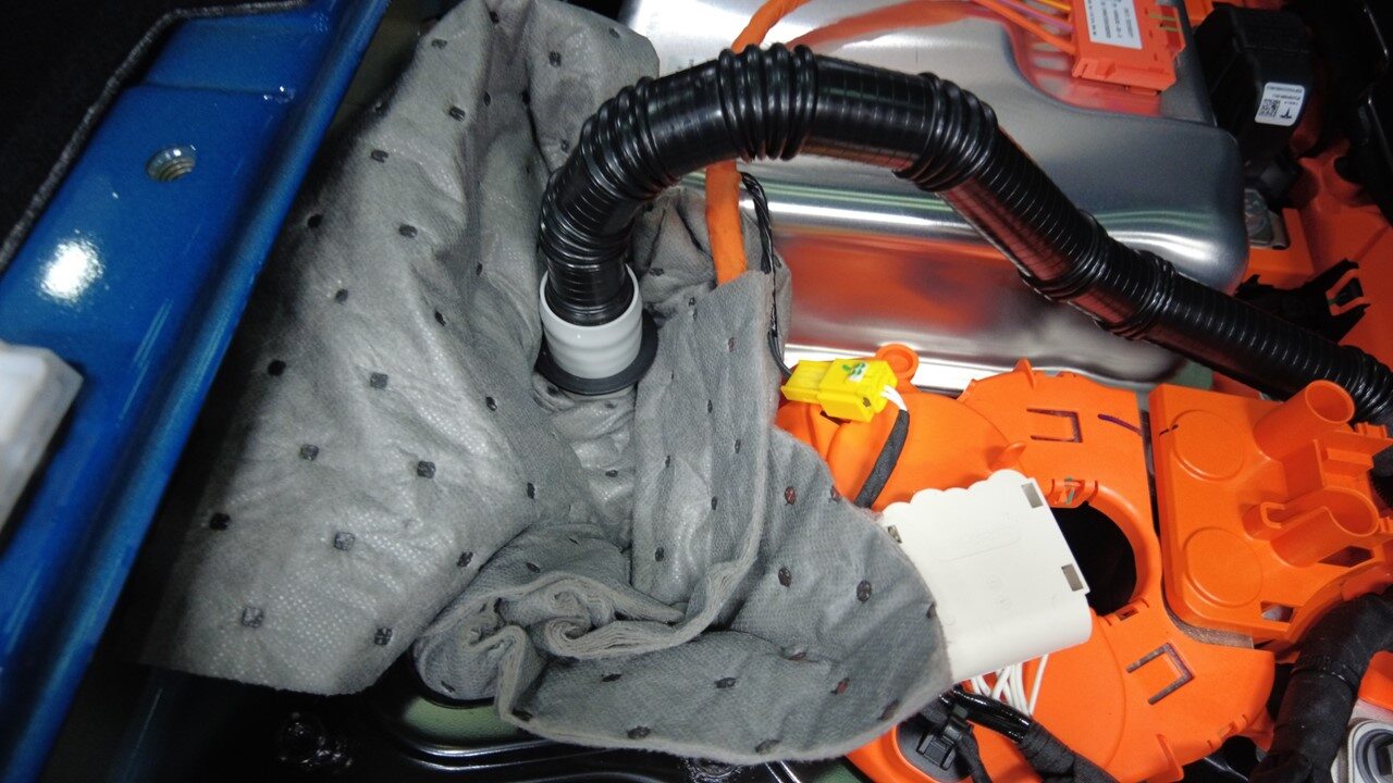 Connect LH coolant hose to rear of HV battery