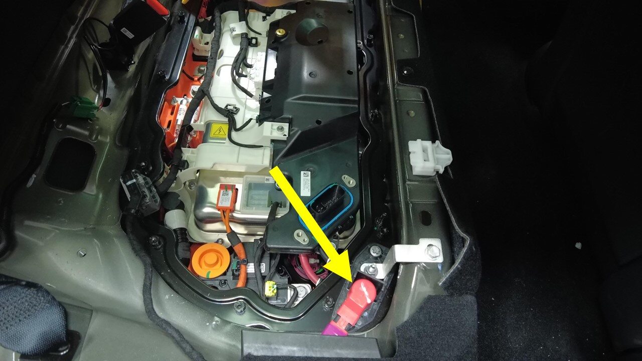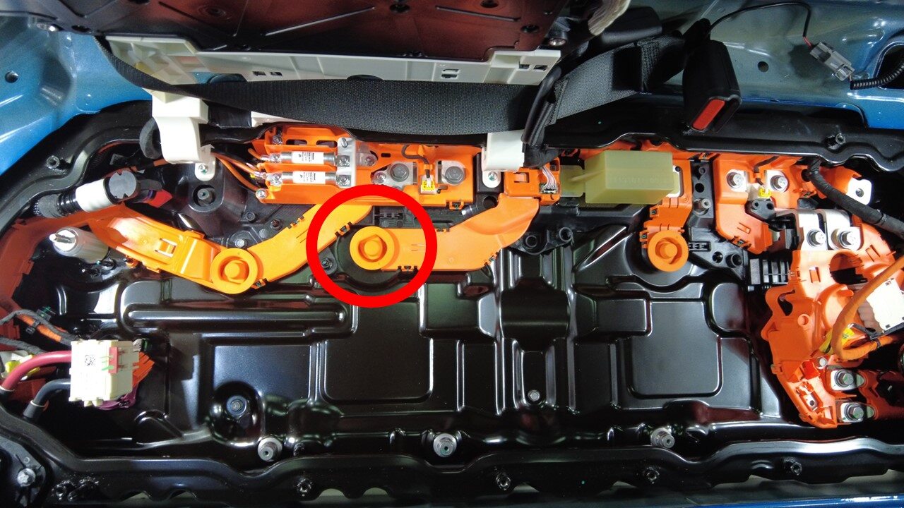 - Remove HV battery rear skid plate enclosure