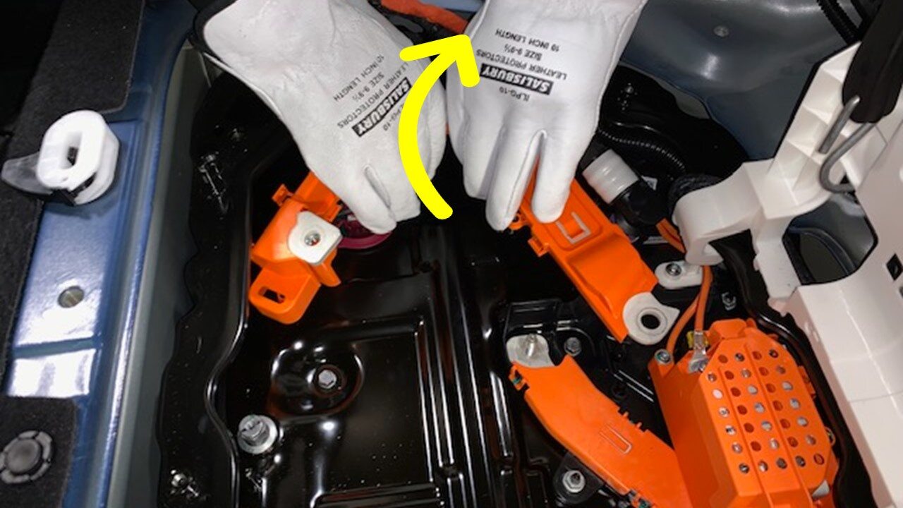 注Ensure all accessible insulators are present, wearing Electrical Protective Gloves is not necessary once all HV components are covered.