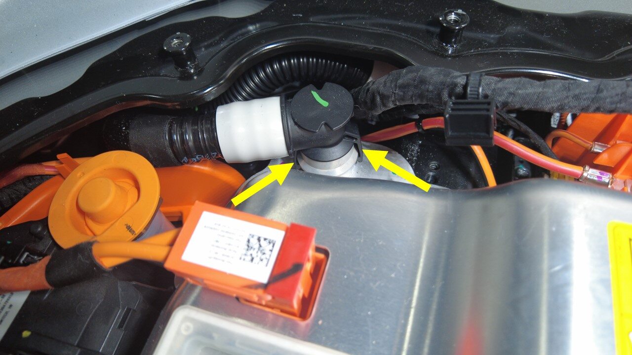 Disconnect RDU inverter inlet tube from LH rear of HV battery