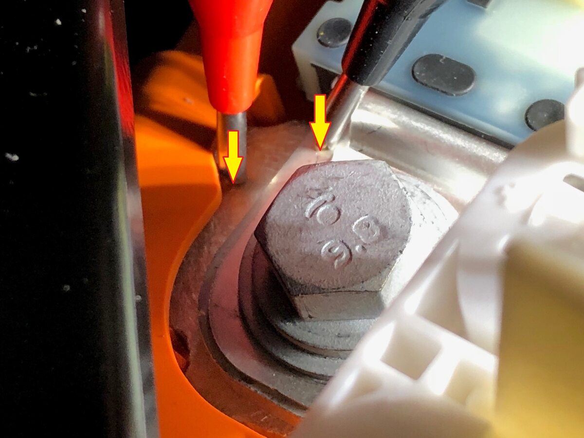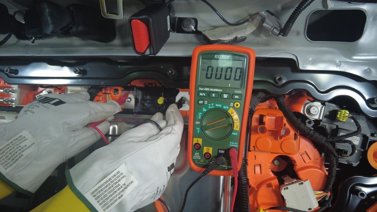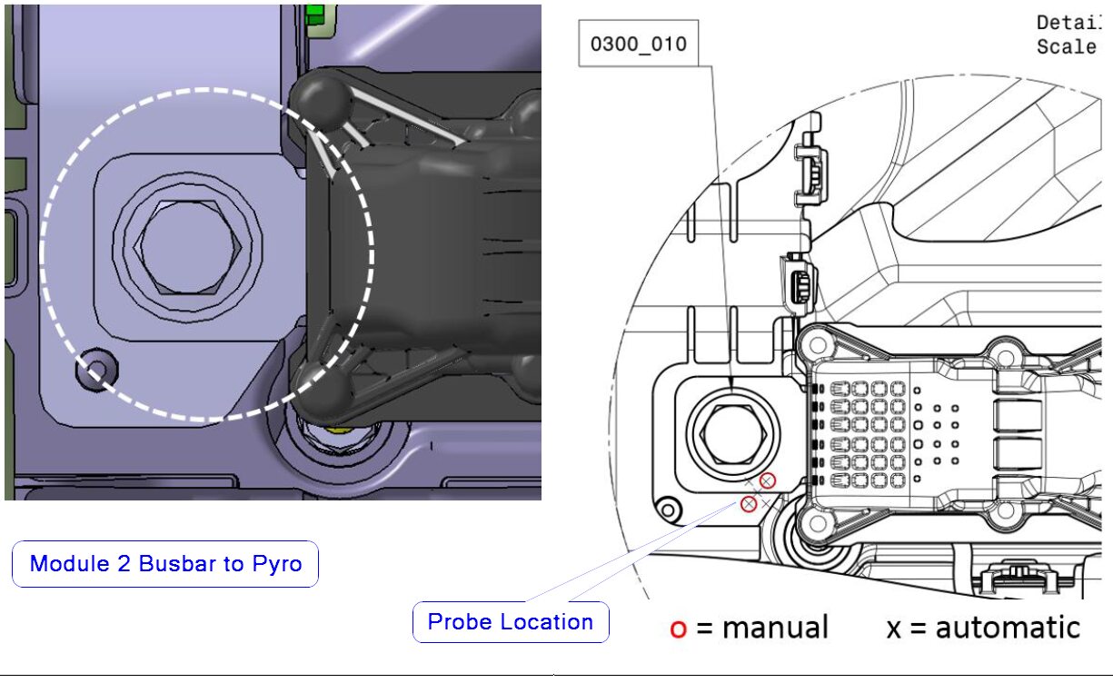 注Make sure to wear PPE (HV gloves, safety glasses) when working on high voltage component, If voltage is greater than 10V, Pack contactors are not open or welded, Stop work and reach out to Service Engineering