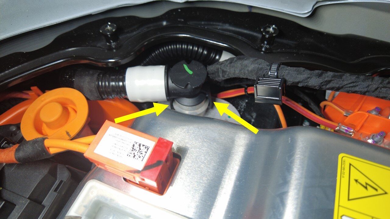 Disconnect rear PT supply hose from rear of HV battery
