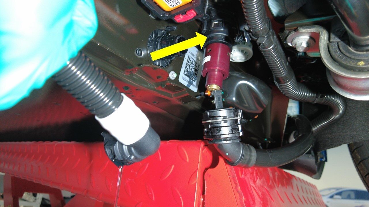 - Remove coolant overflow hose from coolant container