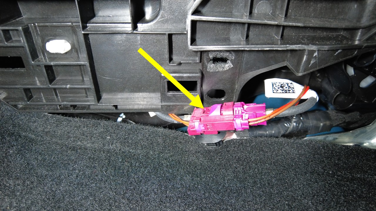 - 拆卸中控台右前侧的线束夹,然后断开连接器。